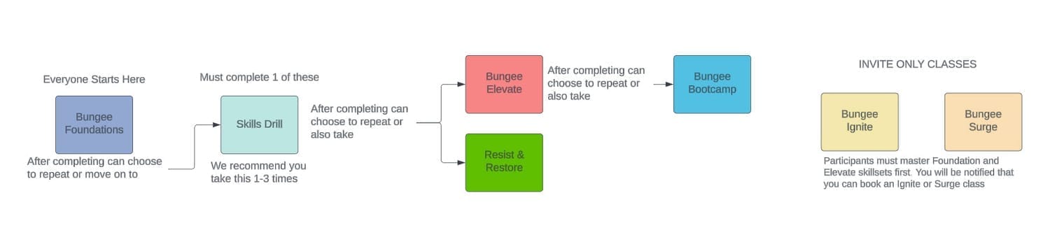 Everyone MUST start with a either a Bungee Foundations, Golden Bungee or a Private Party event.